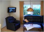 Im Wohnzimmer können Sie auch mit dem Kaminofen heizen, was besonders im Spätsommer sehr angenehm ist. Holz ist im angrenzenden Schuppen reichlich vorhanden.